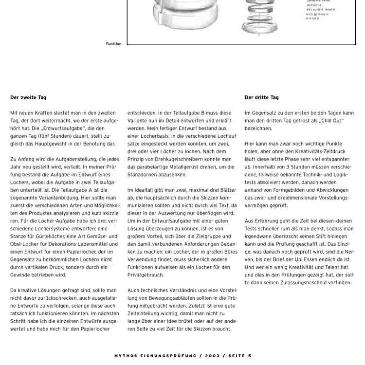 The focus is on a realistic assessment of personal strengths, a clear design direction, and a convincing presentation.
